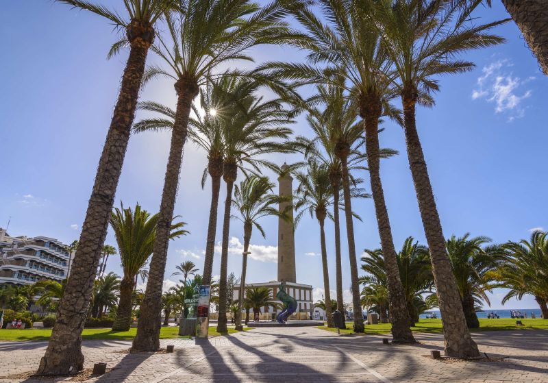 The wide and beautifully designed promenade starts at the Maspalomas lighthouse and meanders along an extensive 500-metre-long golden sandy beach.