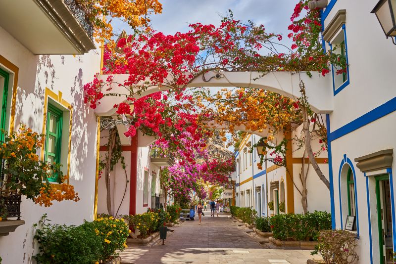 Le caratteristiche case bianche in stile mediterraneo/andaluso con grandissime e coloratissime buganville che decorano le facciate delle case, unite ai piccoli canali e i ponti che permettono il passaggio sui corsi d’acqua, rendono questo piccolo gioiello un posto iconico su Gran Canaria.